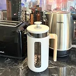 Televize, jídelna, žehlička a žehlící prkno, stejně jako kompletní kuchyně, jsou nabízeny v apartmánu. Tento pokoj také má parketovou podlahu a koupelnu s fénem, osuškami a ručníky. Jsou zde k dispozici postele s měkkými polštáři, péřovými polštáři a hypoalergenními polštáři. Je zde soukromé koupelna.